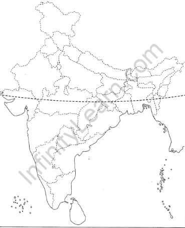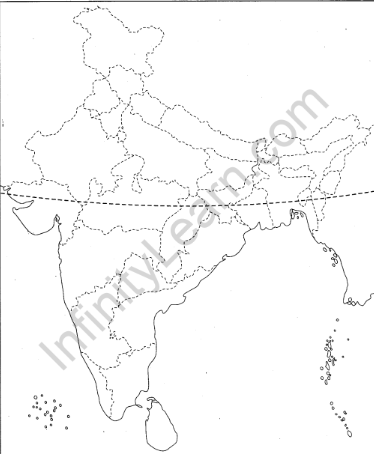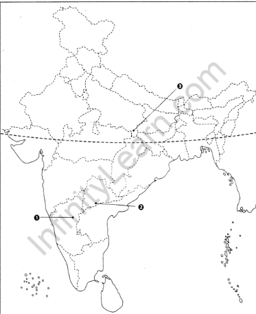 Question 2: Features are marked by numbers in the given outline map of India. Identify these features with the help of the following information and write their correct on the lines marked in the map.