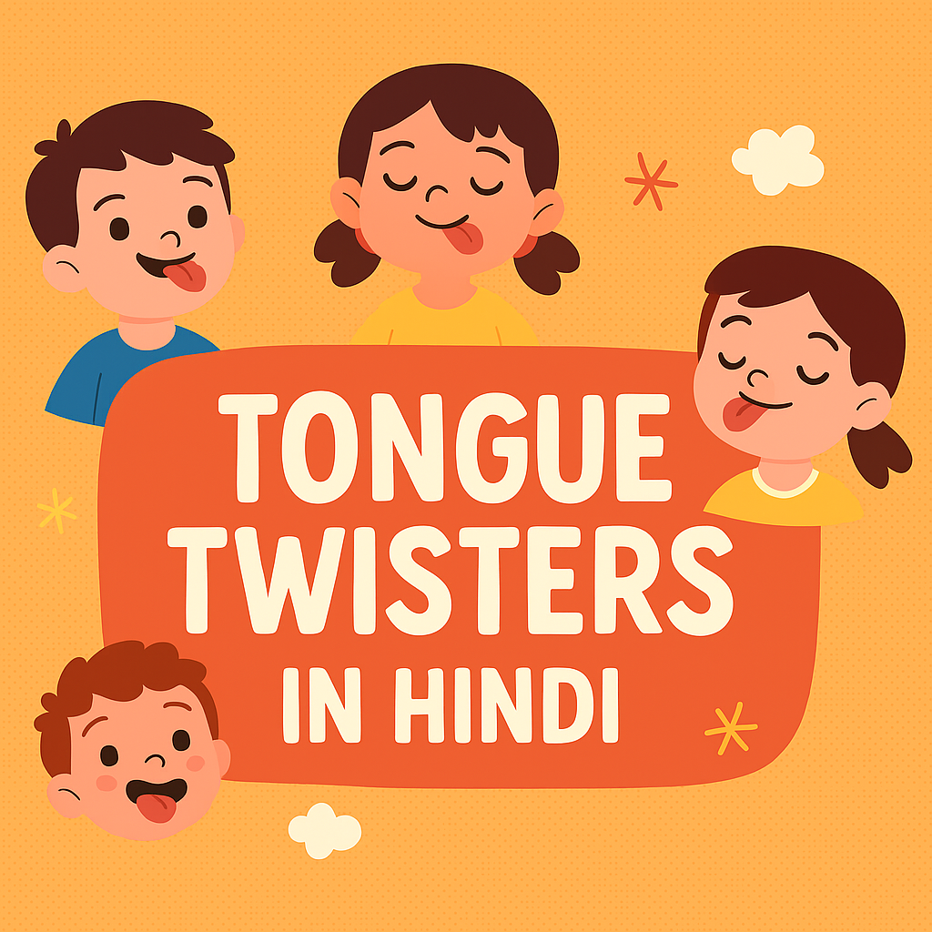 Tongue Twisters in Hindi are fun and tricky sentences or phrases made up of similar-sounding words that are difficult to pronounce quickly and correctly. When someone tries to say them fast, their tongue gets “twisted,” causing funny mispronunciations — that’s why they’re called tongue twisters! In Hindi, tongue twisters are used not only for fun and laughter but also to improve speech clarity, pronunciation, and fluency. They are popular among kids and language learners because they make speaking practice enjoyable.