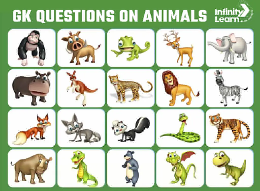 Infinity Learn educational website, quiz books, and online videos provide well-structured GK questions on animals with answers suitable for kids.