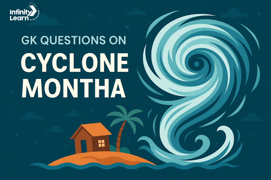 GK Questions on Cyclone Montha: Cyclone Montha is a tropical cyclone over the Bay of Bengal that is bringing heavy rain, strong winds, and coastal alerts across parts of Andhra Pradesh, Tamil Nadu, Odisha, and West Bengal, with Chennai facing intense showers and gusts as the system moves northwestward today and tomorrow. According to IMD bulletins and live trackers, Montha may intensify into a severe cyclonic storm before landfall near Kakinada on October 28, so preparedness, accurate information, and safe practices are very important for learners and families following daily updates.