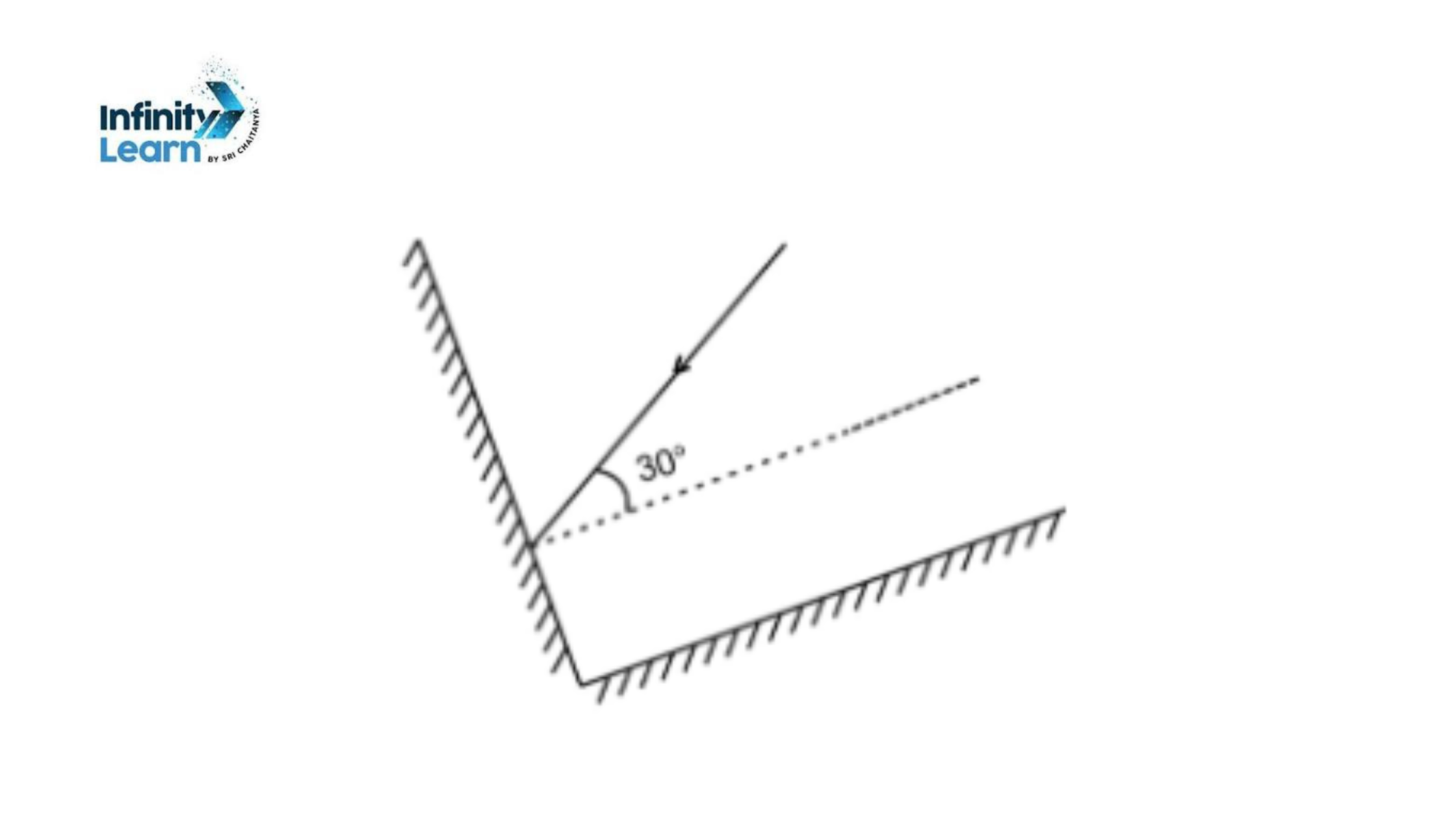 2. Second Mirror (Horizontal): Using geometry, the ray from the first mirror hits the second mirror at an angle of 60° (90° - 30° = 60°). This is the new angle of incidence (i2).